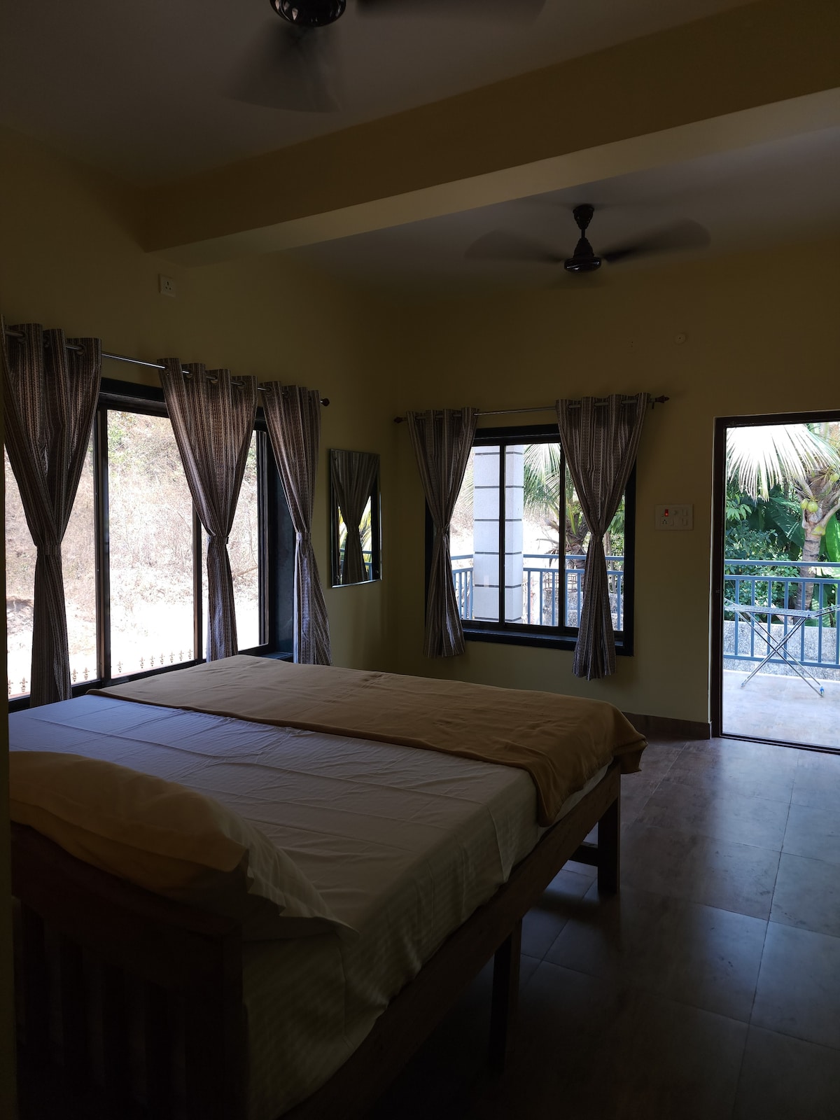 Large 2 bedroom villa, sleeps 6, ocean views from every room, sunbathe or lie on hammocks under a canopy of coconut trees, enjoy fresh coconuts from our trees, home-cooked meals, breezy weather, star-lit skies, and a secluded beach. Visit the Murud fish market for fresh catch, explore Creole ruins at Revdanda fort (20 mins drive), or rent cycles or banana boats and explore Nandgaon village. Ideal for families, couples, or reunions. Available for private rental with a cook, cleaner, gardener.