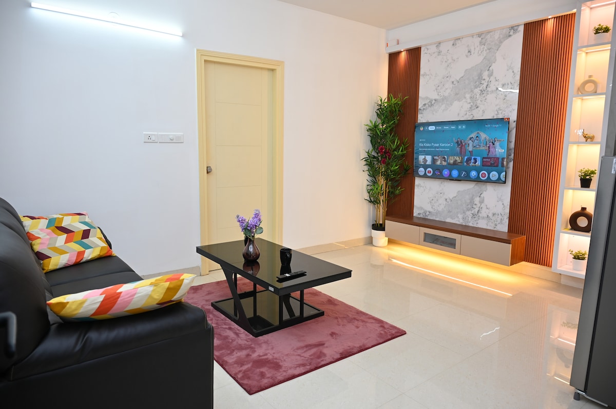 Escape to a peaceful 2-bedroom apartment retreat in a beautiful gated community on the outskirts of Bangalore. Overlooking serene farmland, this cozy apartment is just 15 minutes from the international airport and close to Nandi Hills, concert venues, vineyards, and Isha Ashram. 🌿 Optional amenities like a pool are available within the community (additional cost paid directly to the clubhouse). Perfect for: Couples Families Business travel Weekend getaways Convenient stopover near airport✈️