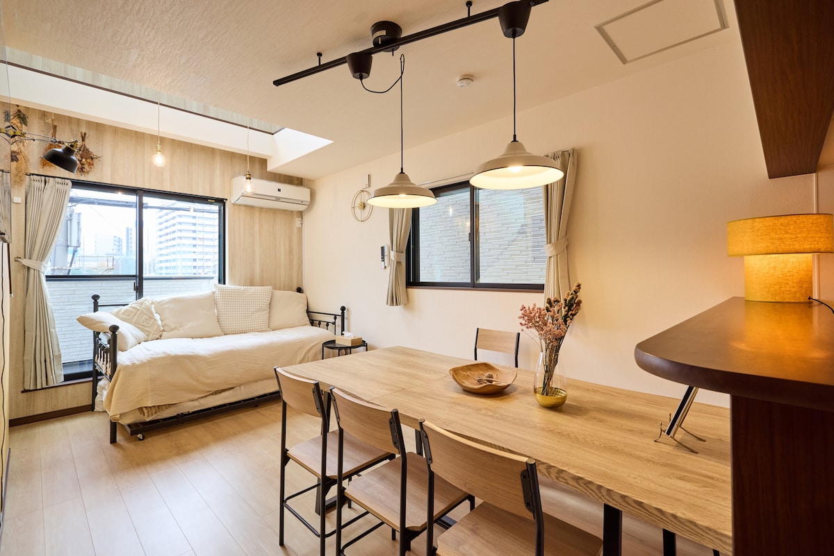 ★大阪市许可获得合法民宿! ★市内中心地带,邻近各个人气景点! ★中日英韩多语种对应,满足您的各项需求! ★整套房子出租,高度隐私的私人空间! ★独立浴室与卫生间,房内设施免费使用! ★专门保洁人员清扫,保持房子干净! ★未满6岁的小朋友免费入住! ★人气区域★ 此公寓距离长堀桥站步行只需10分钟,难波车站步行只需15分。