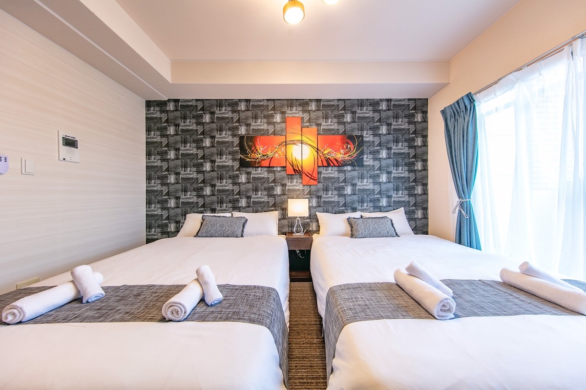美国村步行1分钟|双人床 最多4人|心斋桥・难波道顿堀・橘子街|JR难波・地铁5分|中古&潮流&美食