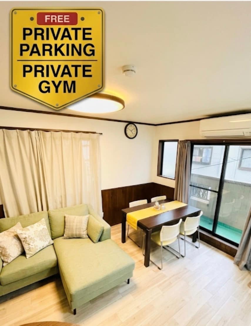 这住宿非常适合家庭和大型团体,最多可容纳24名客人。房间分布在两层楼,总面积达400平方米,采用复式(楼中楼)式布局,设有5个卧室、2个浴室和2个淋浴间。居住空间宽敞,包括舒适的榻榻米区域、大型客厅和餐厅以及设备齐全的健身房。 主要特色包括: 靠近四天王寺前夕阳丘站(步行4分钟),轻松前往难波站(大阪地铁8分钟)和关西国际机场(60分钟)。 靠近天王寺区的热门景点,如阿倍野春日大厦、天王寺动物园和通天阁,只需一个车站或步行15分钟。 优越的交通连接,轻松前往大阪、京都、天王寺和黑门市场等主要旅游目的地。 2分钟步行范围内有便利店,8分钟步行可达超市。 设备齐全的厨房、大型储藏室和架子。 提供免费洗衣设施(含洗衣粉)、高速WiFi以及一系列洗浴用品(洗发水、护发素、沐浴露、浴巾、拖鞋、牙刷、棉签、剃须刀)。 支持自助入住,确保无忧体验。 提供日语、英语和中文多语种服务。