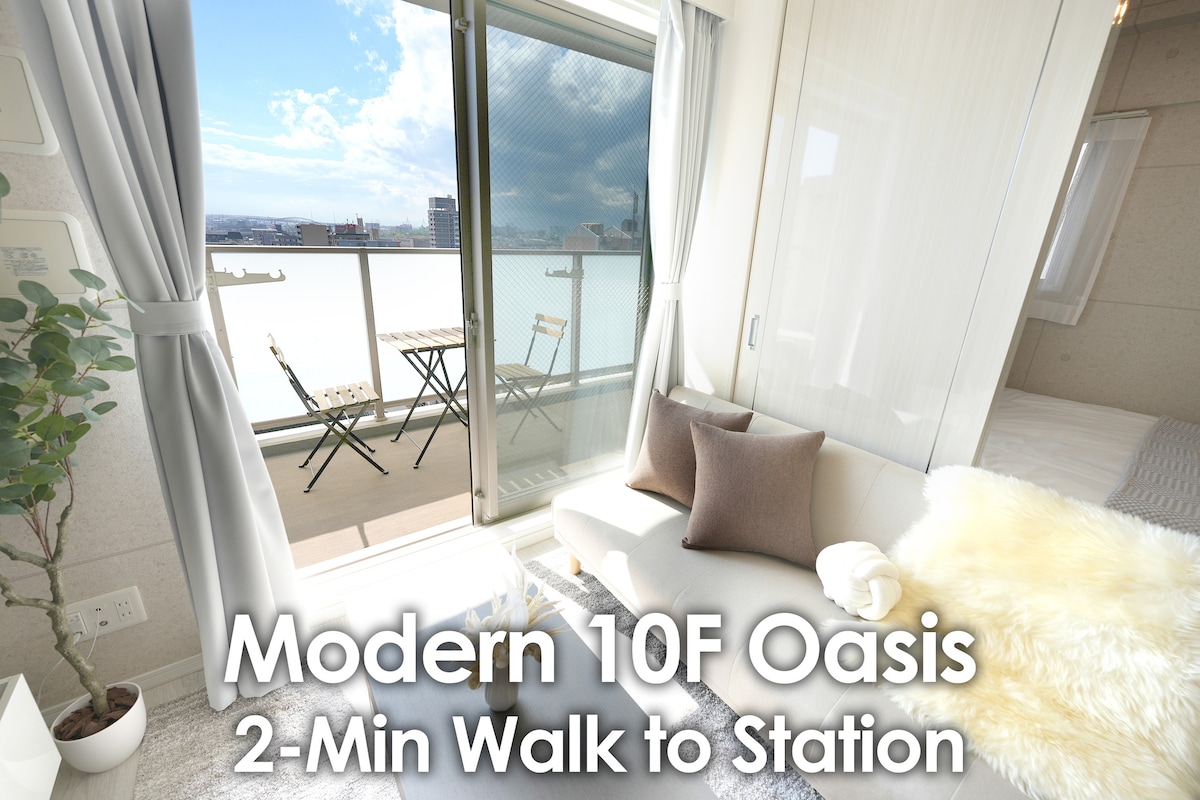 步行2分即达 / 新筑公寓10楼 / 绝佳高空视野 / 现代简约酒店风 / 洗漱用品齐全