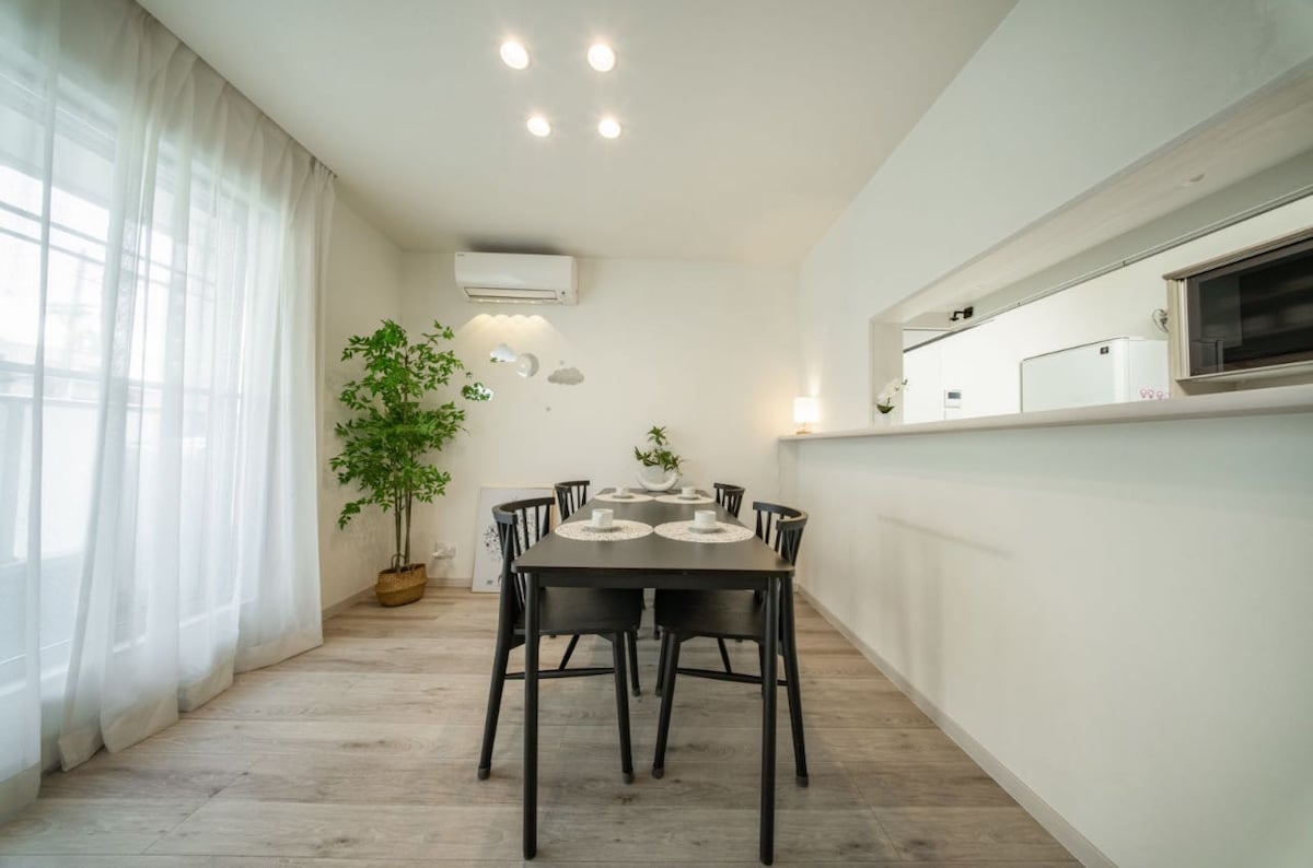 地铁「小路」站步行仅3分钟,近铁「布施」站步行8分钟。双线路便捷交通,无论是旅游还是商务,都是理想的选择。 住宿坐落于闹中取静的住宅区,邻近市中心但环境宁静安心。附设可停大型车(七人座Minivan)的私人车库,是家庭、团体旅游的理想选择。 整栋建筑占地91㎡。宽敞空间,最多可容纳8人,享受如同自家般的自在。无需与他人共用空间,完全不受干扰,尽享真正的放松与隐私。 精心打造的室内空间融合日式雅致与西式舒适风格,配备宽敞客厅、大尺寸浴缸、功能齐全的厨房与洗衣设备,不论短住或长住都能轻松惬意。 步行3分钟即有24H便利店,步行5~6分钟更有大型超市、药妆店以及商店街与多间美食餐厅,应有尽有,体验「像在大阪生活一样」的自在旅程。 无论是亲子同游、朋友聚会、情侣出游,这里都是您在大阪最温暖安心的家。