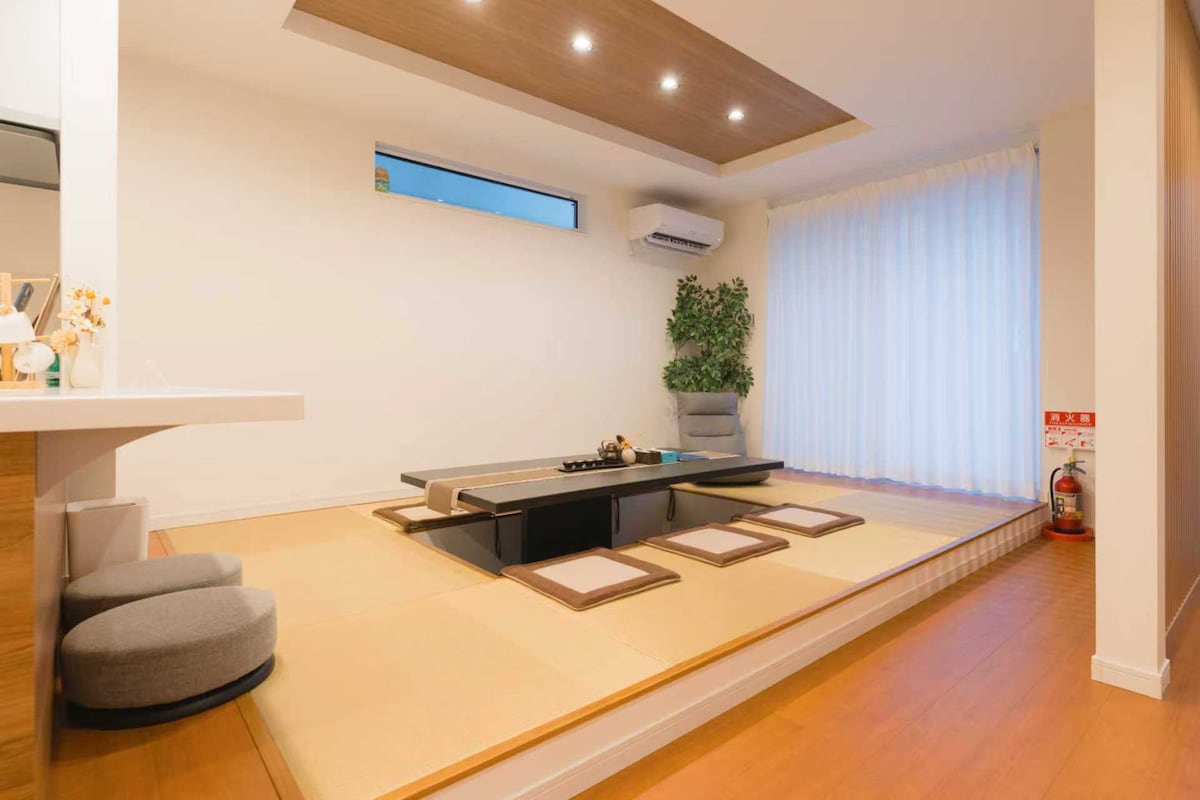 全新日式别墅,豪华高档,四房一大厅,可住15人,机场32分直达民宿,难波6分,有停车场,车站步行三分