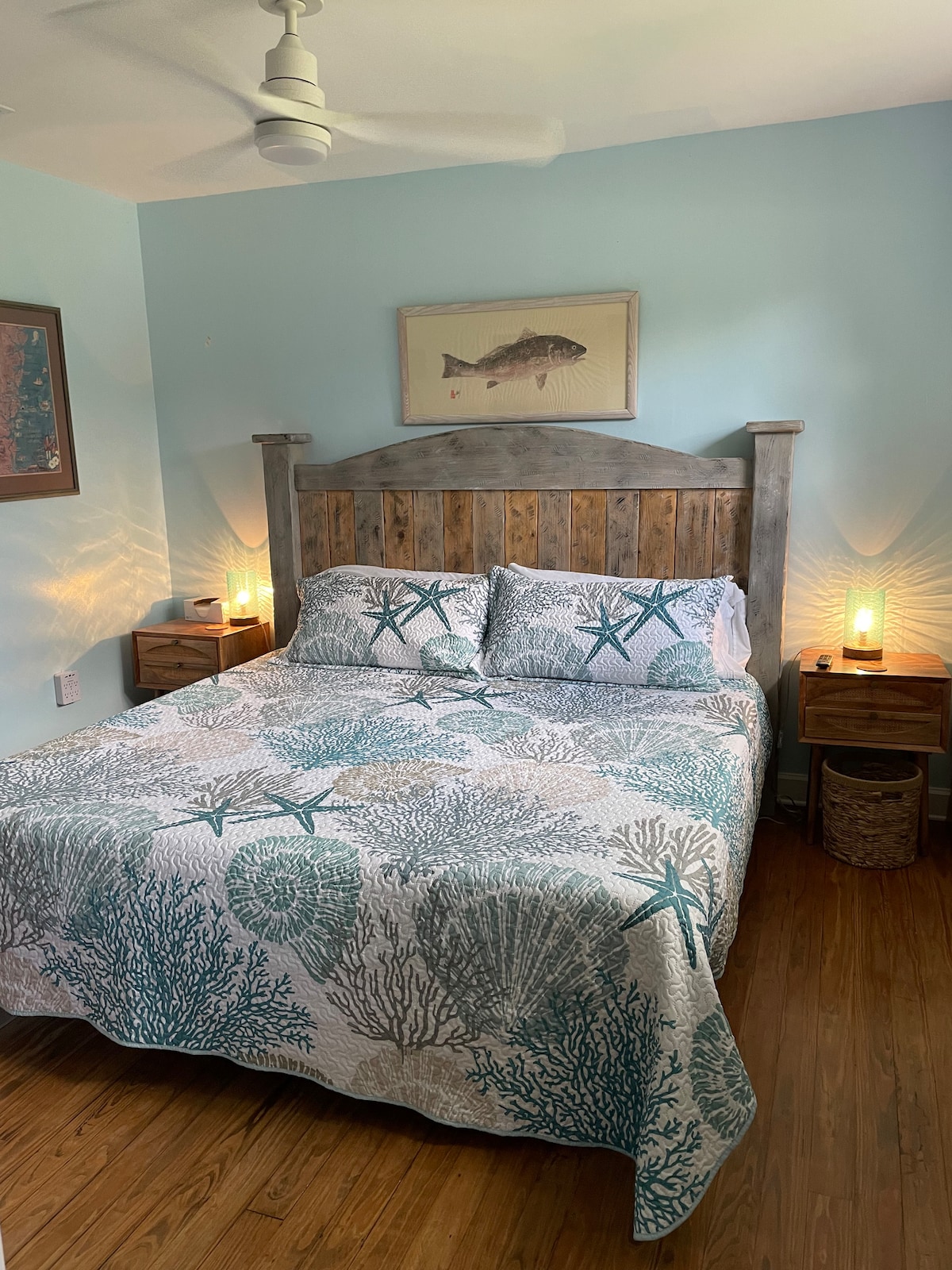 This charming cottage is the guesthouse located next to another Airbnb, which is surrounded by churches and a charming green space. You almost feel transported to old town Georgia with church bells chiming. Then you can have a lovely short walk to downtown Brunswick or to the bakery around the corner. Minutes from Jekyll and St.Simons for beach access. Newly furnished and very relaxing. This space has been completely renovated in 2021. Cool colors and just what you need for your getaway.
