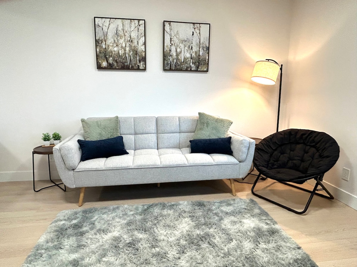 A mountain suite perched above the city and overlooking the Salish Sea. You’ll enjoy the morning sun as it rises over the ocean and city lights as you unwind at night. ★“The pictures do not do justice for how amazing the place & view is!” -Kylene ☞ 646ft² mountain suite w/ 10’ ceilings ☞ Nespresso, French Press & drip coffee ☞ Blackout blinds in bedroom ☞ Ocean view patio w/ fire pit ☞ In-suite washer + dryer ☞ Fully equipped kitchen ☞ Heated Bathroom flr ☞ 250 Mbps wifi ☞ 55” Smart TV