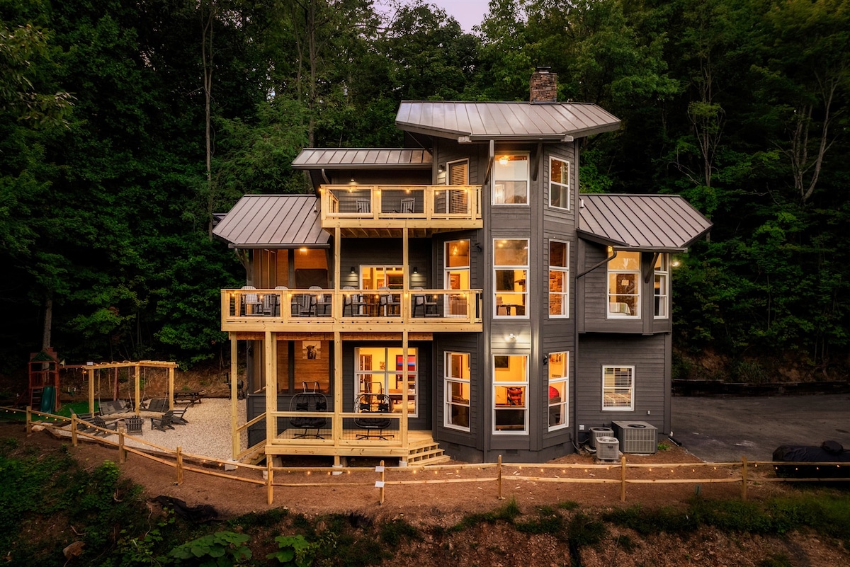 Experience unparalleled luxury at Windows to the Mountains, a modern marvel nestled in Gatlinburg with stunning views of Mt. Leconte. Chalet features a rooftop deck with a modpool, movie theater, and exquisite outdoor amenities. Enjoy a fully-equipped kitchen, cozy living room with a vapor fireplace, and a master suite with a spa-like bathroom. Complete with a coffee bar, game tables, and a sauna, Windows to the Mountains offers an exclusive retreat for discerning guests seeking a lavish escape.