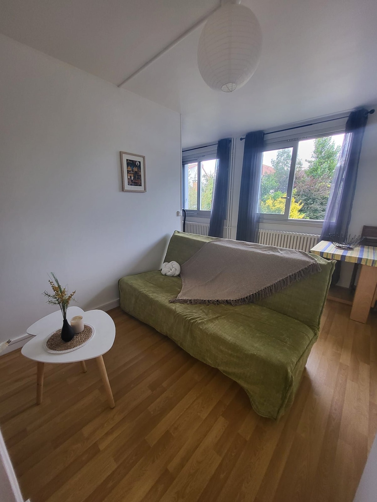 Appartement en rez de jardin dans un quartier paisible de Nanterre, à deux pas des commerces et des transports. Idéal pour 2 à 4 personnes, il se compose d'une grande salle de bains, une cuisine fermée, et d'un coin chambre isolé par un rideau et d'un canapé convertible dans le salon. La cuisine est équipée en vaisselle et ustensiles. Les commerces sont au bout de la rue et le RER est à moins de 10 minutes de marche, permettant de ralier le centre de Paris en 10 minutes