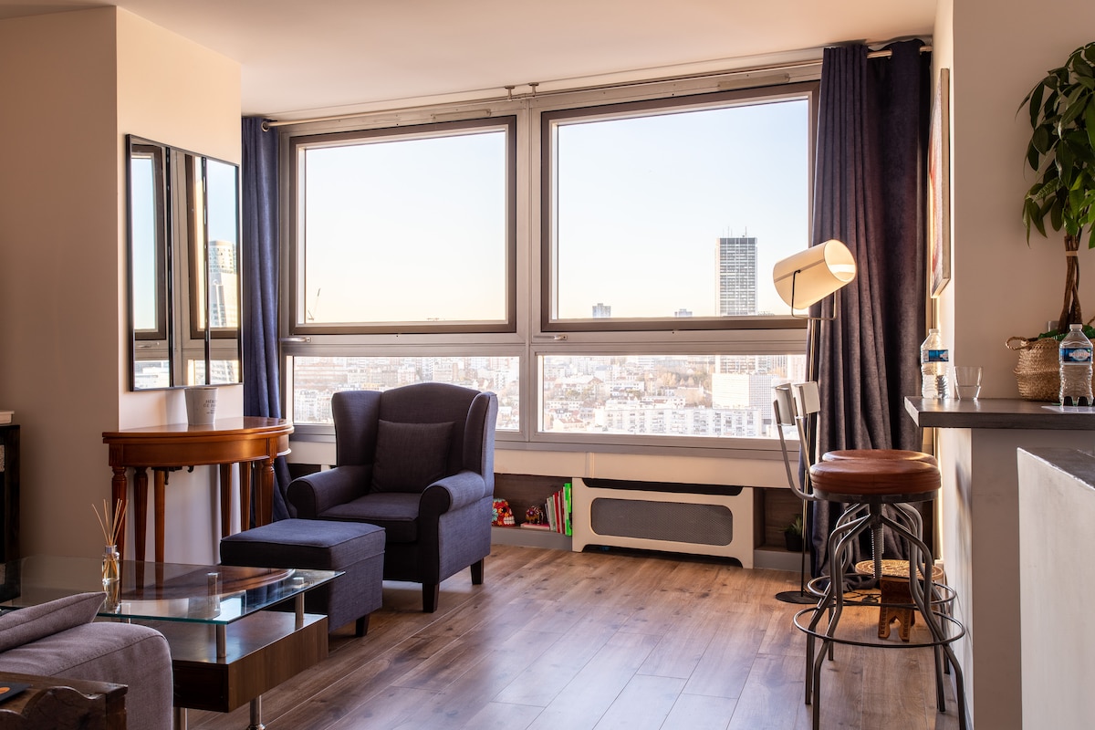 A quelques pas de Paris et des transports publics , découvrez le "24th" : un magnifique appartement refait à neuf. Une vue magique, lumineux, original, sécurisé, climatisé bien situé avec un parking et des tennis, cet appartement est fait pour vous. / Few steps away from Paris, discover the “24th” : a beautiful apartment entirely renovated. Magical view, bright, original, safe, well located, air conditioning, parking and tennis courts, this place is for you.