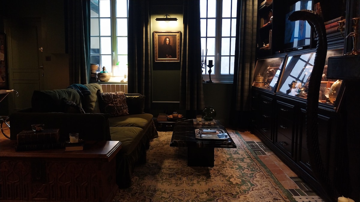 Bienvenue au DOMAINE DES SORCIERS 🧙♂️🪄 Un appartement unique inspiré du monde de Harry Potter, et surtout des plus malins d’entre eux : les Serpentards 🐍 🎟🔮 -15% dès la 2e nuit consécutive 📍Situé en plein centre ville de Nantes, à côté du Passage Pommeraye, à proximité immédiate de tous les commerces, restaurants et sites touristiques. Idéal pour les fans de magie ou les voyageurs en quête d’un séjour hors du commun ✨️