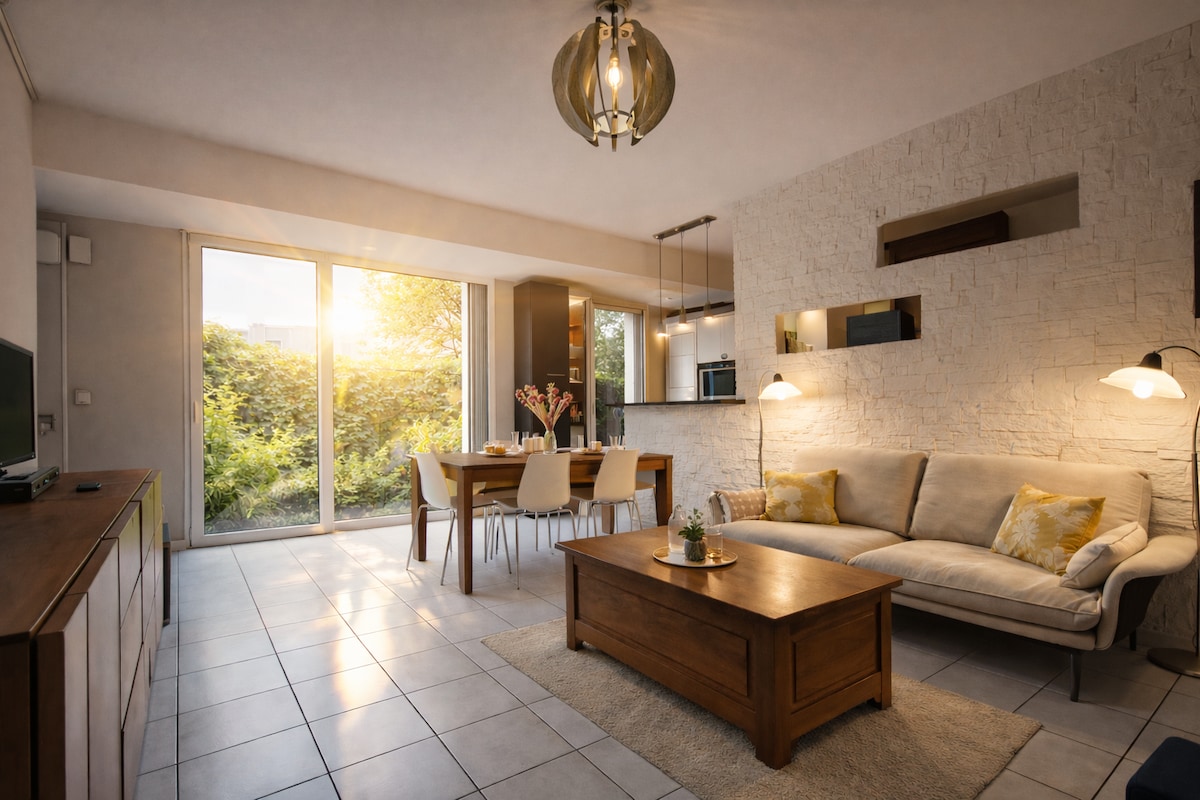 🌿 À La Chapelle-sur-Erdre, profitez d’un cocon paisible pour vous détendre loin de l’agitation, tout en restant proche de Nantes ✨ A seulement 20 minutes de Nantes, profiter de ses restaurants, boutiques et activités culturelles 🏛️🍽️ La côte Atlantique est également facilement accessible en 45 minutes pour des escapades en bord de mer. 🧺 Linge et draps de douche inclus ⚠️ Les serviettes pour le jacuzzi ne sont pas fournies