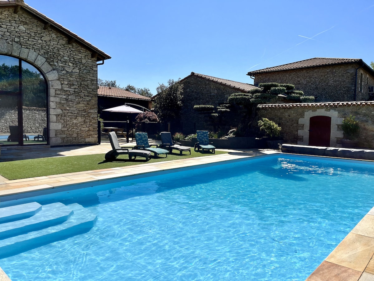 Le Nid du Héron:带有恒温游泳池的城市度假屋