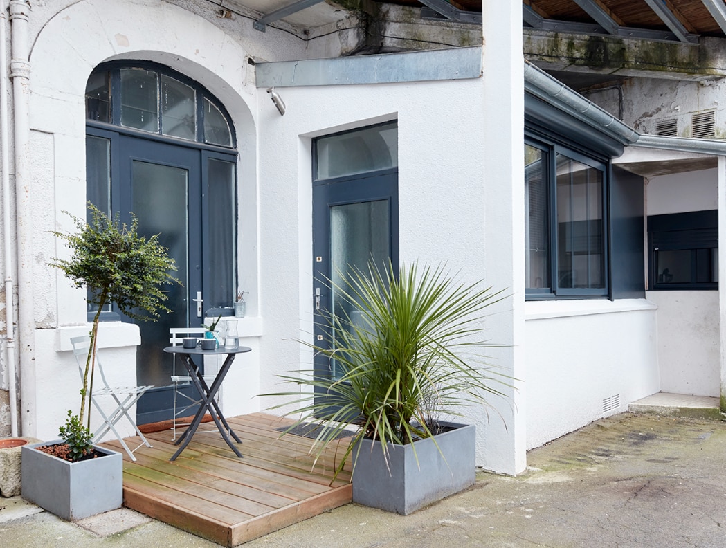 Profitez d'un studio sur cour avec terrasse privative en plein coeur du centre historique de Nantes. Au 1er étage, au coeur du quartier animé (parfois festif !) Bouffay, idéalement situé: - Tram à 30 mètres - Gare: 3mn - Machines de l'Île: 10mn - Château: 2mn - Cité des congrès: 12mn - Cathédrale: 5mn - Île de Versailles: 15mn Vous trouverez tout le nécessaire pour votre confort: Lit queen size, Wifi, TV, cuisine équipée, café, thé, gel douche, machine à laver, fer à repasser, …