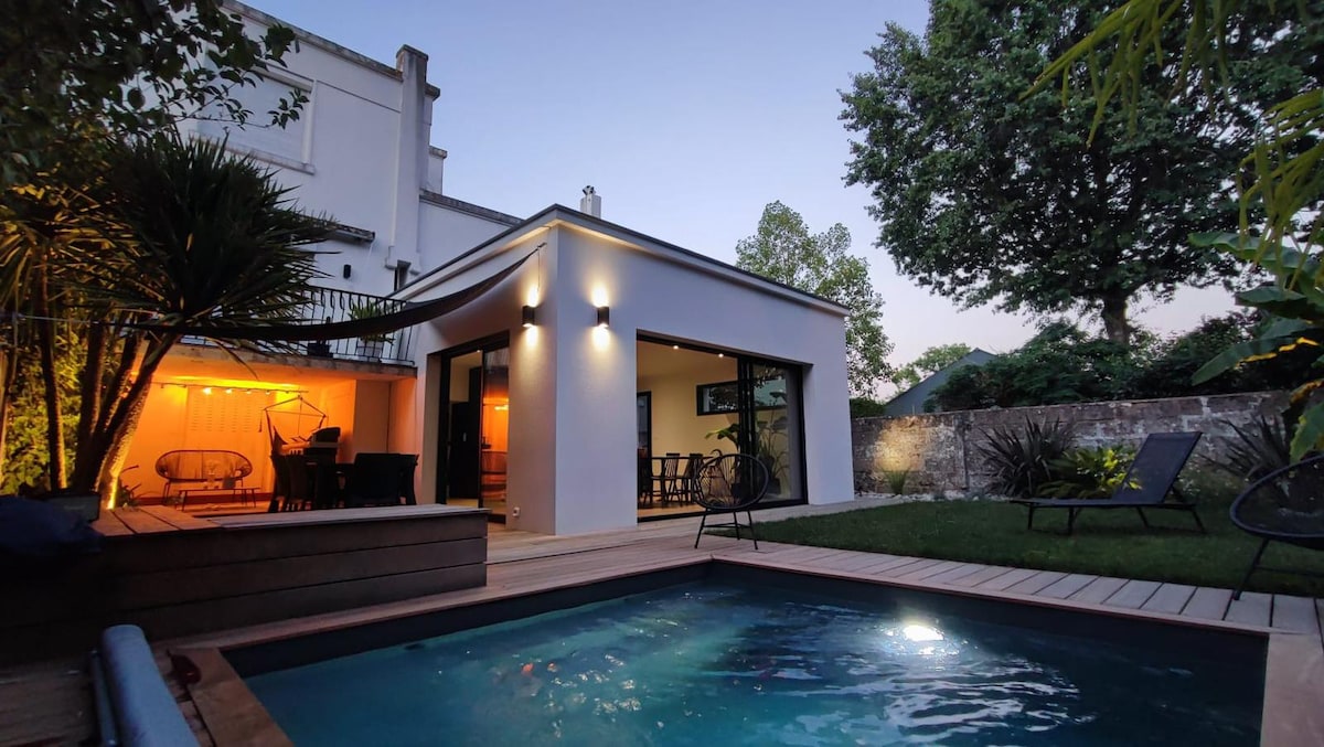 Le Nid du Héron:带有恒温游泳池的城市度假屋