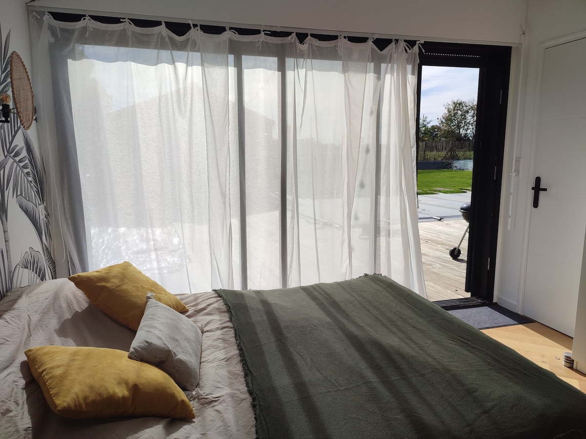 Découvrez la suite californienne, ce logement de plain-pied, baigné de lumière, propose une chambre avec un lit queen size, un salon, une salle d'eau et un dressing (29 m2) - attention pas de kitchenette. Cet hébergement sera idéal pour vous accueillir confortablement lors de votre séjour. C’est un havre de paix dans un quartier calme à quelques minutes des principales infrastructures de la métropole nantaise (Zénith, aéroport, polyclinique, Centre Atlantis...).