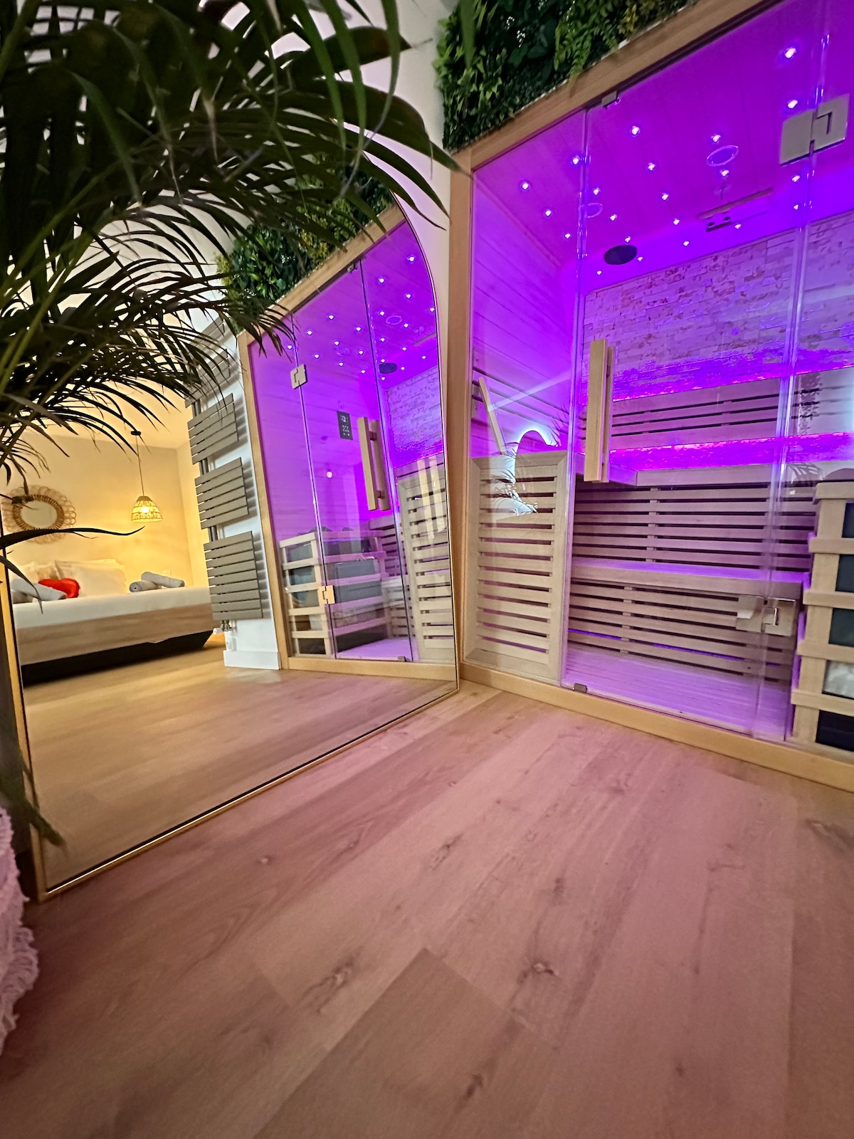 Plongez dans un écrin de douceur au cœur de Nantes. SPA privatif avec bain à remous, sauna et douche XXL dans ambiance tamisée. Une invitation dans une parenthèse de complicité et de passion. L’Insoupçonnée est l’adresse secrète des amoureux en quête d’évasion sensorielle. ❤️Espace SPA indépendant et privatif ❤️Bain à remous professionnel 2 places allongées ❤️Sauna spacieux pour 2 ❤️Douche à l’italienne XXL