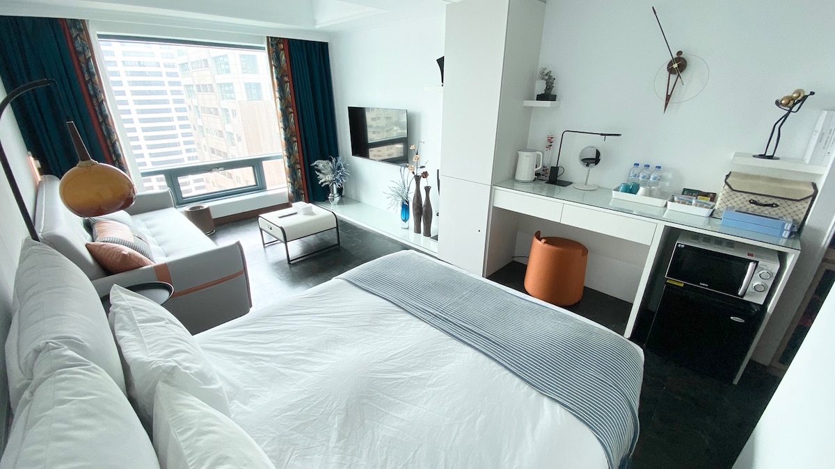 双人房-连住有优惠/毗邻勤美绿园道草悟道/客厅、浴缸、阳台、加大双人床/美食商圈/美术馆/审计新村