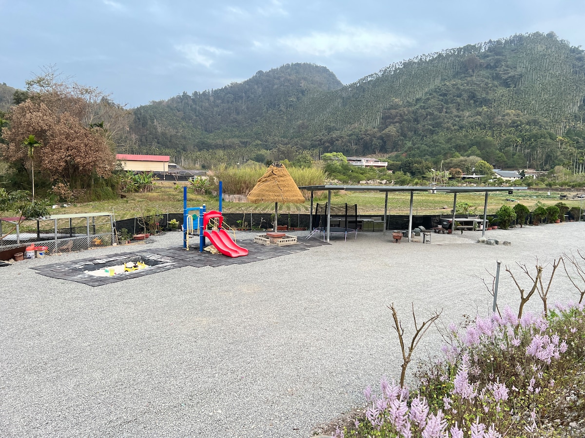 我們是位於奧萬大群山海拔900公尺的山區小屋,交通方便,公車也可到達。到萬大生態電廠只需10分鐘車程,到武界部落只需20分鐘車程,到奧萬大國家森林公園僅需20分鐘車程,到清境農場需40分鐘車程,到合歡山約1小時30分鐘車程。小屋內有寬敞明亮的客廳,有設備齊全的廚房,還有乾淨舒適的兩間臥室。室內設有分離式變頻冷暖氣,室外備有免費停車場。小屋外有戲水池和沙坑及近千坪的草地,適合孩子玩耍奔跑。我們這裡有陽光、和風、竹林、草地、小池、遠山,可以住宿也能露營,是一處親友歡聚,體驗山林森活的靜謐之地。