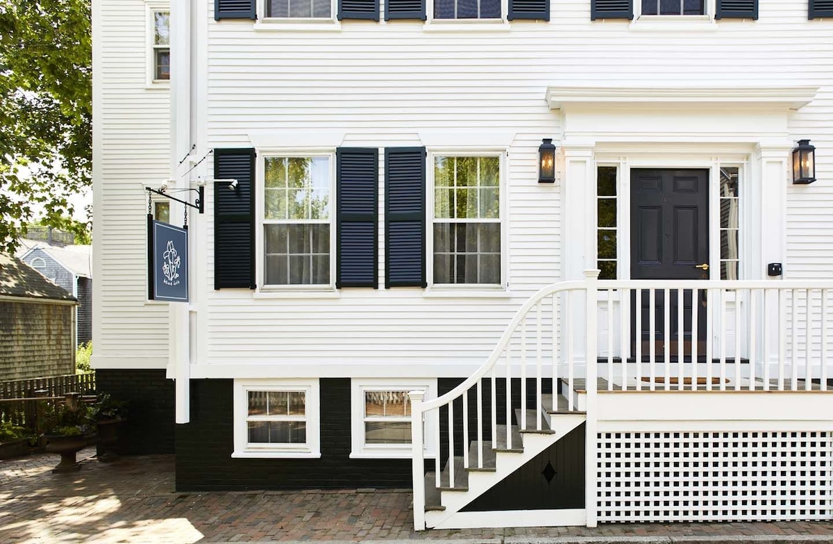 - New, stylish, boutique hotel with just 12 rooms, luxury furnishings, and all the glitz and glam Nantucket has to offer! - Inspired by seaside designs, it's loaded with a patio garden, a Mediterranean fountain, and plenty of Blue Iris flowers. - Decked out with lush fabrics, warm textiles, and just a jump away from the conveniently located Hussey Street.