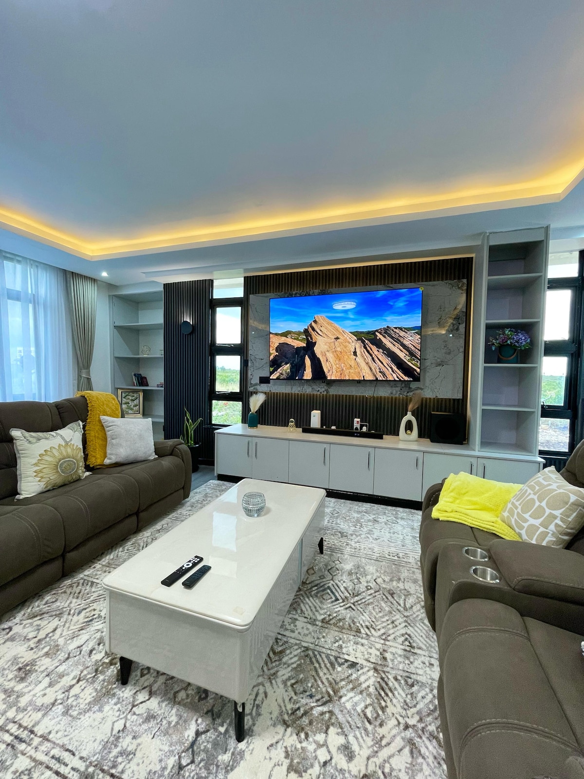 Escape to the luxurious and spacious Ivory mansion, a 5bedroom self catrering villa nestled on 3acres in stunning Nanyuki, Kenya.With breathtaking views and tasteful furnishings.This private oasis offers the perfect escape.Enjoy ample outdoor spaces to relax and unwind all while soaking up the beauty of the surrounding landscape.