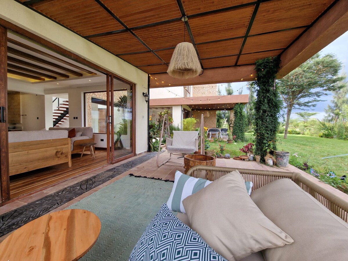 This stylish five bedroom mansion in Nanyuki is perfect for group trips, family and friends, business trips, couples, bachelor and bachelorette's parties, honeymoon, birthdays, baby showers, weddings, girl's trip, school reunions and much more. Barbecue and grill is available on site. Bonfire is available within the premises. Goat meat lovers and choma will love this vacation home. Home away from home, this is a great escape from the hustle and bustle of the city life. Karibu sana Nanyuki 😊