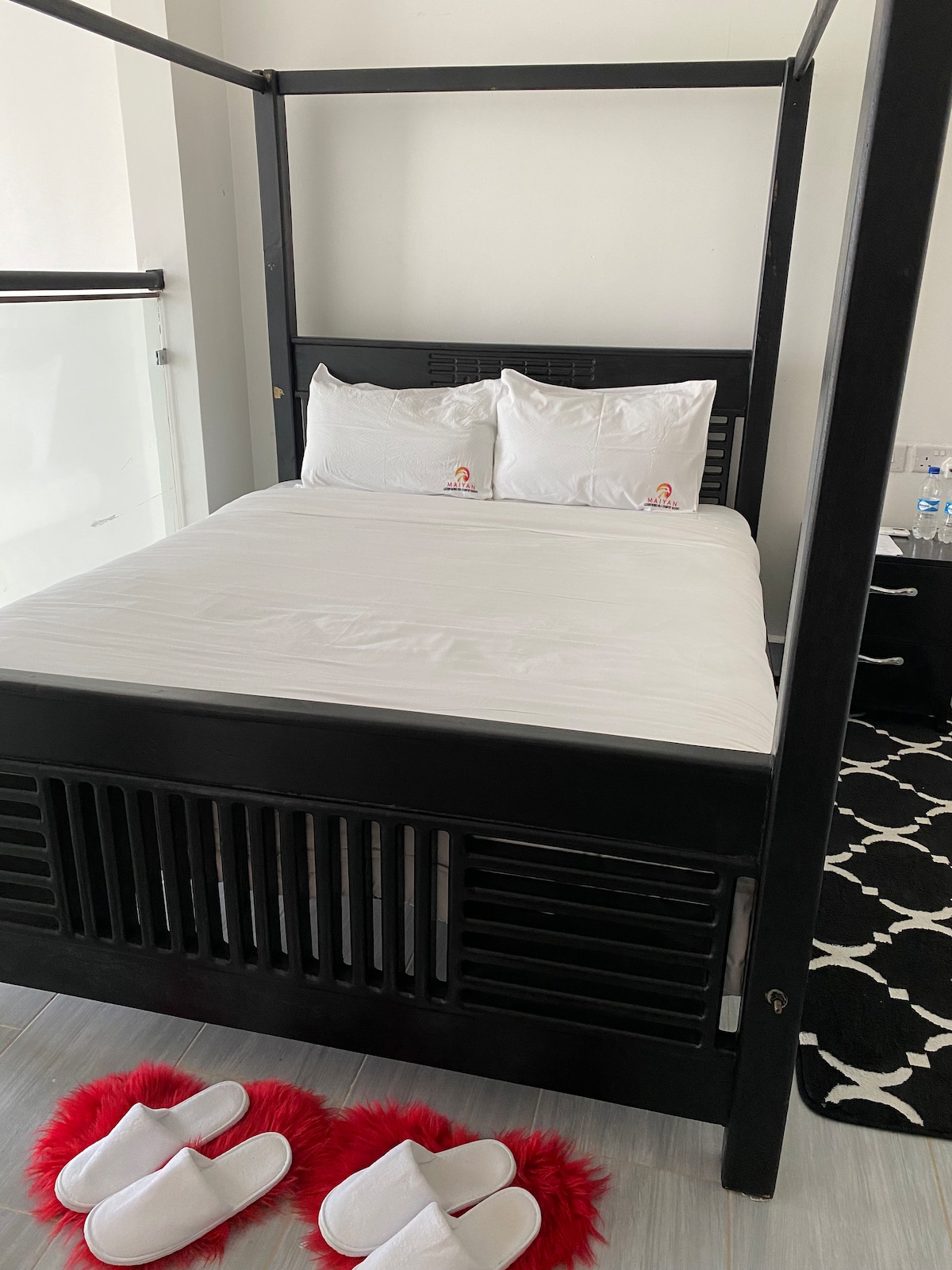 Bavaria BNBs have been uniquely furnished and designed to meet our clients needs. It comes with a fully equiped open plan kitchen,fridge, a smart tv, Netflix, Wi-Fi, a very comfy couch and beds. Its next to the tarmac, has close proximity to to Batuk, cedar mall, restaurant and eateries.