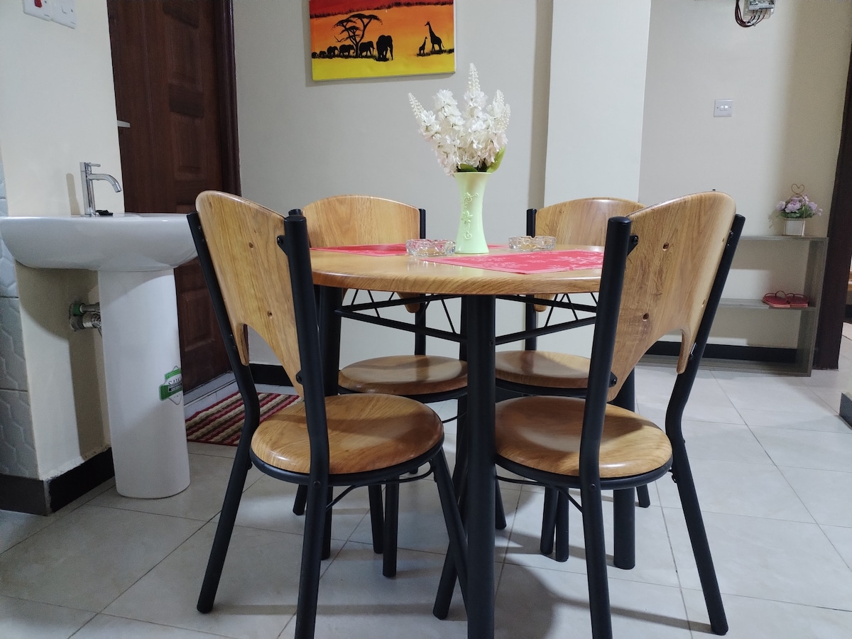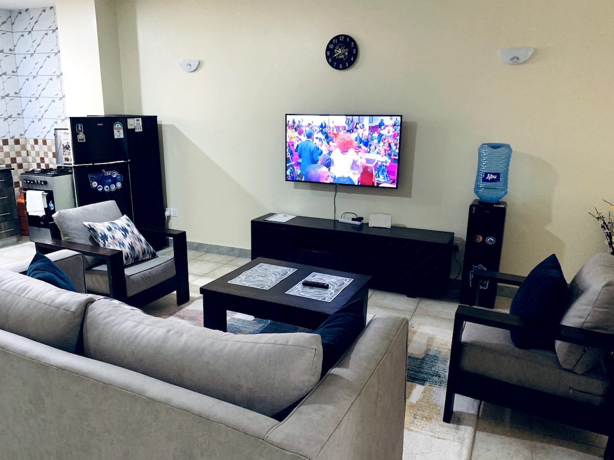 This is a Fully Furnished Apartment Located in Nanyuki ; Milimani Estate Features 1. Free wifi 2. Smart Tv 3. Fully Equipped Kitchen 4. Hot showers 5. Daily Housekeeping 6. Free toiletries etc