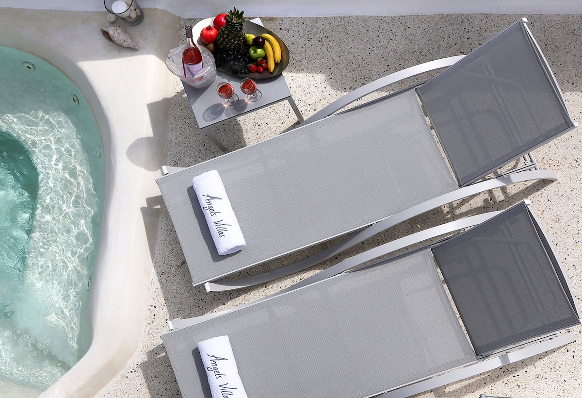 A stylish apartment right at the heart of Naousa, inside a high end complex of 4 apartments with shared terrace but private lounge area and heated jacuzzis. This exclusive residence, consists of two master bedrooms with bathrooms en suite, plus a sofa bed with curtains, can accommodate up to 6 guests who seek their perfect holidays in the picturesque town of Naousa. Its minimalist style and stunning terrace will bring your calmness levels to their maximum. Jacuzzi off from November to March