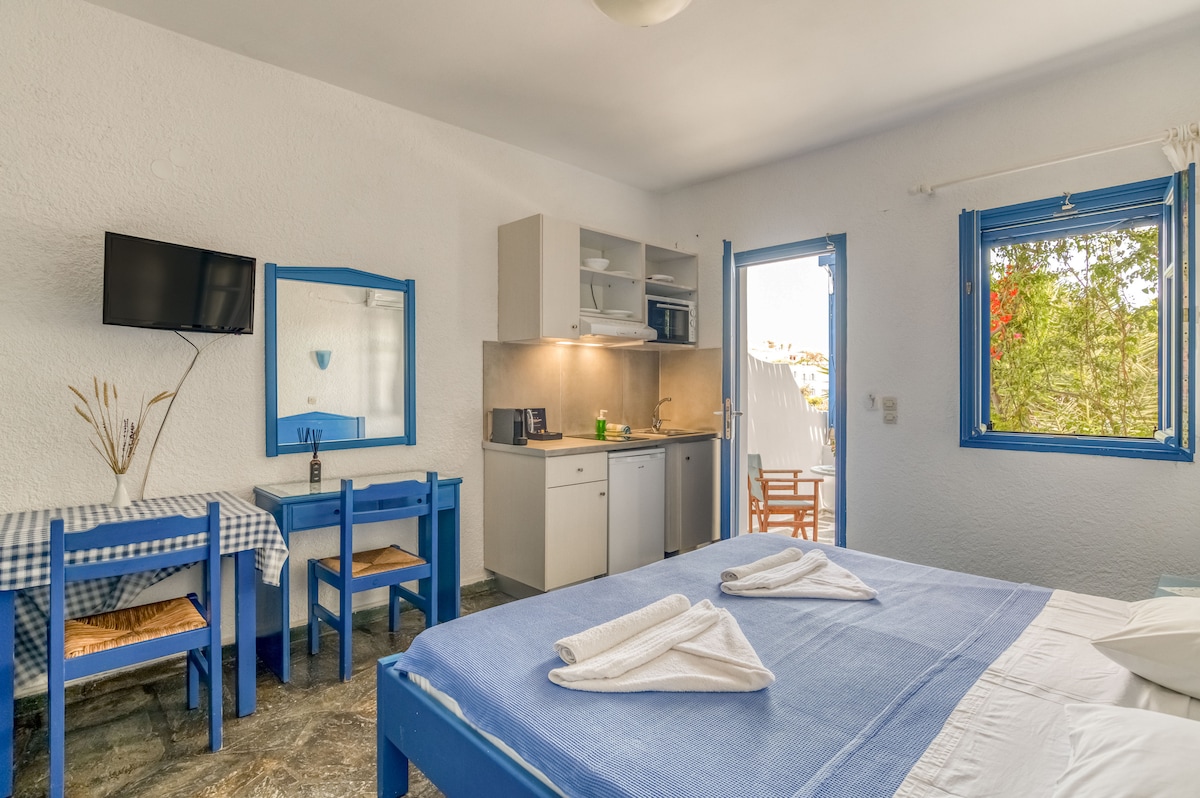 Το Anastasia Aegean View είναι ένα παραδοσιακό κυκλαδίτικο κατάλυμα που συνδυάζει την νησιώτικη αισθητική με τις σύγχρονες ανέσεις. Το studio βρίσκεται σε ιδανική τοποθεσία, μόλις 4χλμ από το λιμάνι και 2 χλμ από το αεροδρόμιο, ενώ η στάση του λεωφορείου απέχει 200 μέτρα. Σε κοντινή απόσταση βρίσκεται το σουπερμάρκετ και τα εστιατόρια . Το κατάλυμα διαθέτει επίσης, κλιματισμό, wifi, κουζίνα, ιδιωτικό μπαλκόνι με θέα στη θάλασσα και τον κήπο.