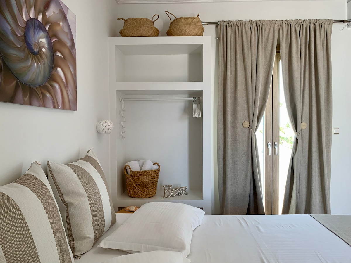 50 steps from the most famous beach of the island is located this welcoming and stylish house with a mix of traditional and modern touches. In a distance of 50 steps there are mini markets, bakery, restaurants, pharmacy, gym, bus station, taxis, beach bars, diving center, the sea ofcourse and in the same time is situated in a quiet location. The house is well equipped, it has a kitchen with all the necessary cooking accessories, toast and coffe maker, hair dryer, iron and a make up station.