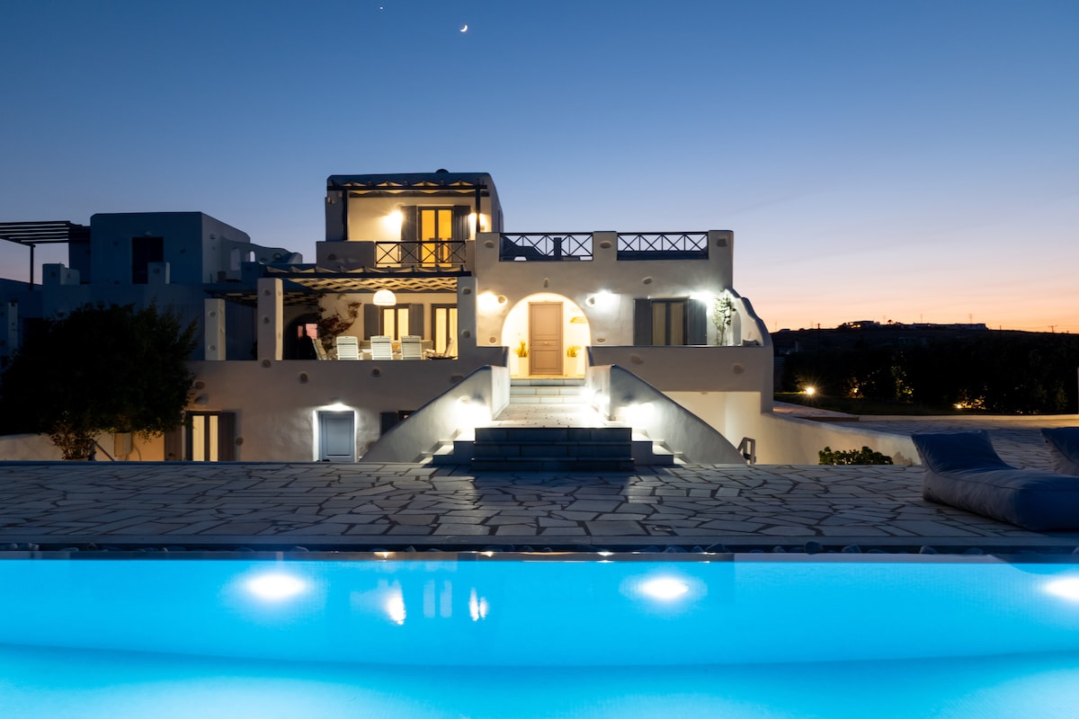 Villa Anatuzi is a unique, luxurious villa with a gorgeous private swimming pool. It was built with much love and affection to give you a cozy atmosphere and a feel of the charming Cycladic spirit. The villa is positioned in the Naoussa Bay on a hill, 300 meters from the seafront, in the village of Kolimbithres. The view from the villa is magical and considered by many to be the best in Paros