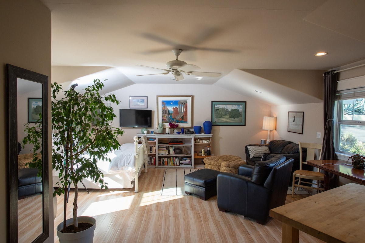 Sonoma Studio is decorated with fine art and oriental rugs. Views of the mountains and Valley. Kitchenette and a charcoal bbq and traiger for your use on the patio. It’s Supplied with coffee& tea,oatmeal or granola for your first morning. Fully stocked for light cooking. Smart tv with all the streaming services. Sonos speaker in room. Molekule air purifier. Clean and comfortable and centrally located in the heart of the Valley. Ten minute drive to Sonoma Square.