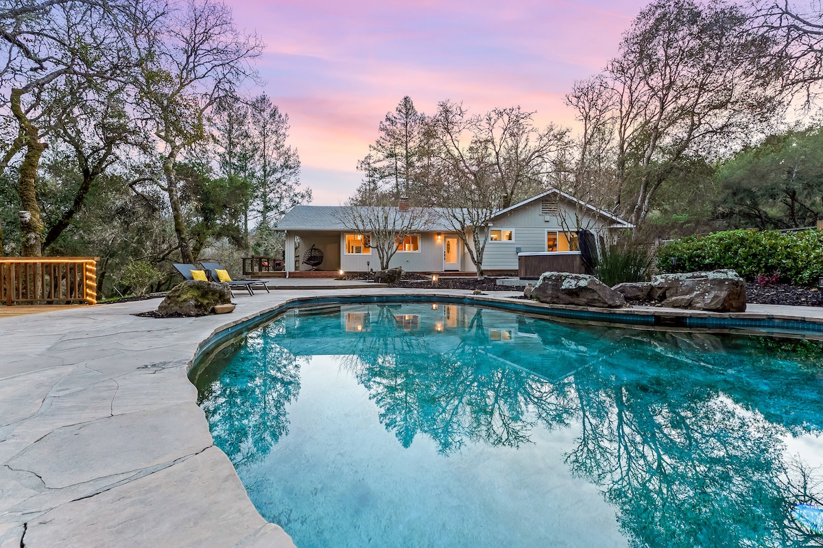 Gather your group and experience a stunning wine-country home just 5 minutes from vibrant downtown Sonoma. This 3 bedroom ensemble includes a main house + guest cottage, multiple outdoor lounges, hot tub, fire pit and pool, gas fireplace — perfect for lively group days and quiet restful nights. Surrounded by vineyards, yet just minutes to wineries, dining and town, this distinctive retreat invites you to book now and indulge in togetherness, adventure, and rejuvenation.