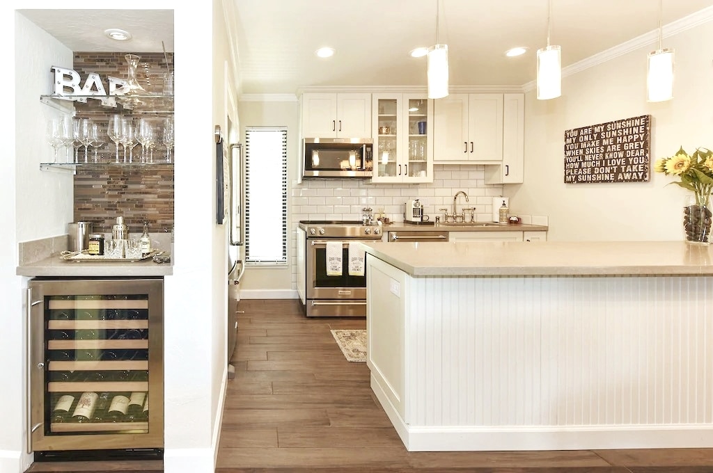 Modern and spacious with glass enclosed porch, high ceilings and lots of French doors, skylights and windows. Close to town in the very nicest area within a mile of downtown, walkable, or bikeable with my cruiser bikes. You’ll love the views, the location, the goats, quail running around and delicious cafe next door. We just lost our mini horse 7/27 :( we had 16 years, sorry if you had planned on meeting him, it was a sad loss for us.