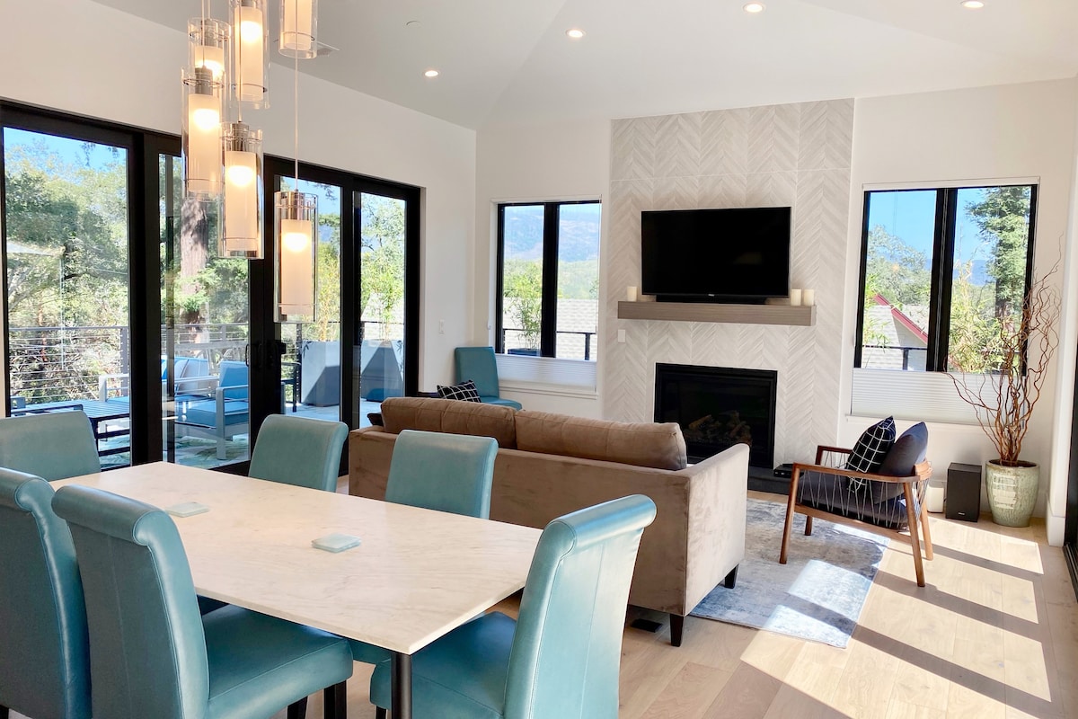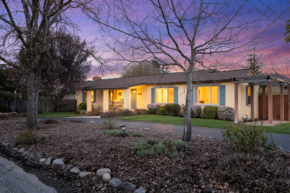 Central wine country location Close to wineries, tasting rooms, gourmet market, french bakery & restaurants New luxury 3-BR, 2.5 bath Hot tub & bocce ball We can host 5 adults + 2-3 kids Quiet spacious home nestled in the redwoods on 1/2 acre Complimentary pastries from local bakery Linens, towels, spa robes & toiletries provided Complimentary coffee, tea & sugar Huge outdoor decks with 3 seating areas, dining table, fire-pit Corn-hole, giant jenga & board games Kids’ books, games & baby items