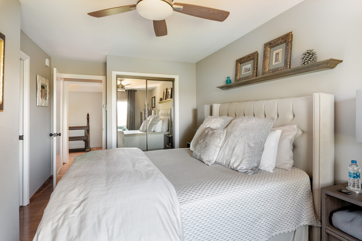 My place is a short walk to downtown Napa. There are two guest rooms with private baths (1 king bed and 1 queen, and this is the Queen bed bedroom) listed separately on AirBnB. PLEASE NOTE this is not a whole house rental, I live IN the home too. With a personal wine cellar that reached 20,000 btls at its peak during a previous career, and who ran two cult Napa Valley wineries since moving to the Valley in 2009, you can be assured my recommendations and insider info will add to your visit.