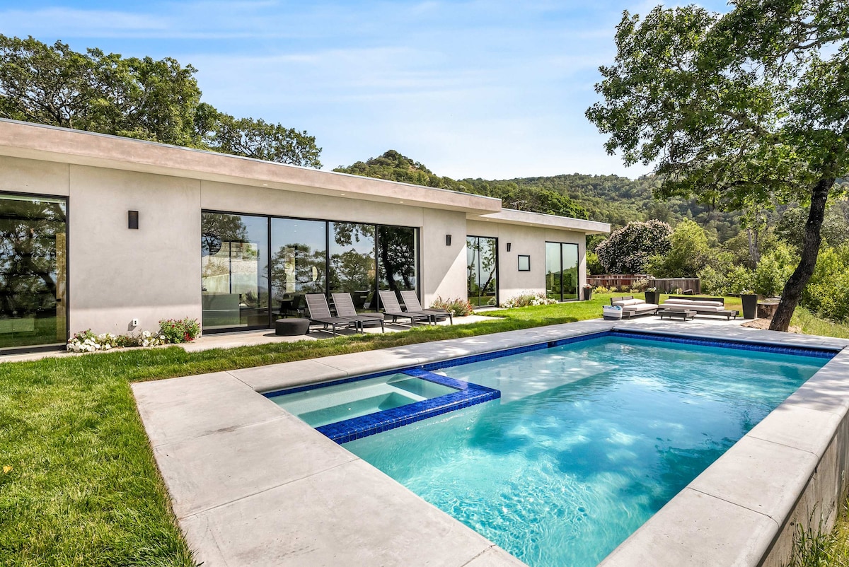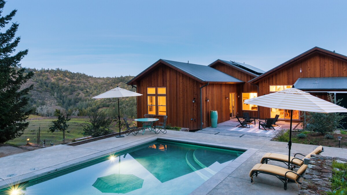 Built of natural wood and stone, the contemporary house and its tiered terraces harmonize with the surrounding pine forests and lush landscape. Enjoy playful afternoons on the pool terrace or explore the estate’s vineyard and pond below. Crawl into the hot tub for a sunset soak, and grill up your spoils from Oxbow Public Market for an alfresco feast.