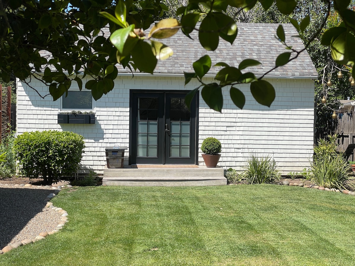 Private cottage on wooded lot in Sonoma Valley wine country with a separate gated entrance. Recently renovated, fully equipped, and very clean. Perfect for couples, weddings, or remote work. We love longer stays, with 30% weekly and 60% monthly discounts. Only 5-10 minutes to top Sonoma wineries, restaurants, hiking and Sonoma Plaza. Open studio design with queen bed, full sofa bed, bathroom/shower, full kitchen with cafe table, private deck with grill, AC, WiFi, Apple TV, EV charger.