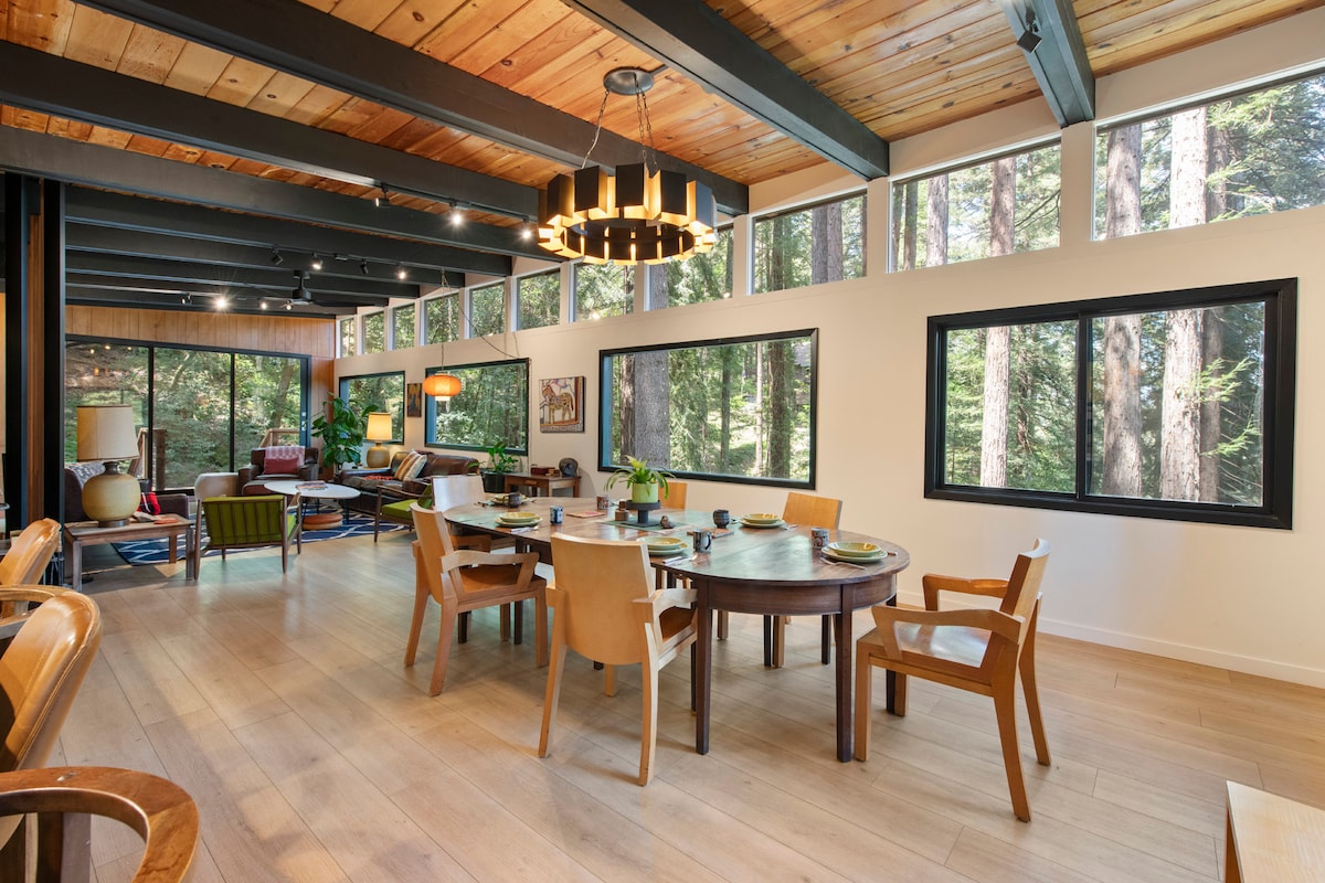 Looking for a healthy dose of tranquility and adventure at your doorstep? Over 100 steps from the road below, this 'treehouse' is perched above it all and horizontally oriented on a steep lot between two creeks. The all glass façade creates dramatic views of the redwoods, Mt. Tam and across downtown Mill Valley to Blithedale Ridge. Anchored to granite the house sits on handmade stone walls from rock harvested on the property during construction in the 1960s. Truly a one of a kind stay.