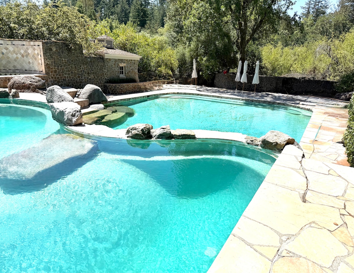 度假村风格的房子,带水疗和游泳池,位于纳帕/旧金山之间