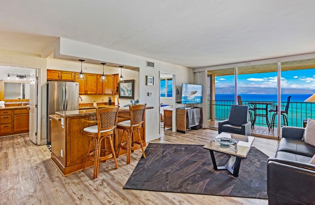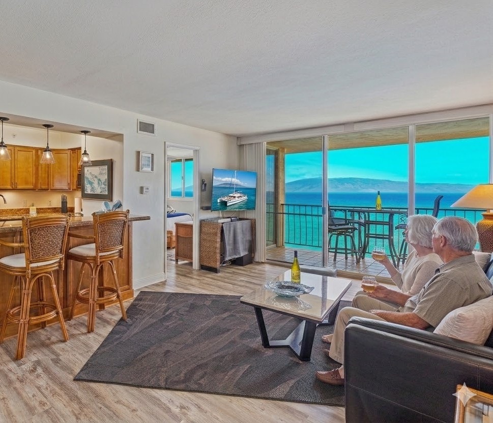 Welcome to the Royal Kahana! Views from your private lanai are first class. View includes ocean, sunset, neighboring islands, mountains, and even humpback whale breaches. Relax at our upgraded studio which has all the amenities you need for an amazing stay. Recent upgrades include updated lighting, artwork, furniture, all new bedding and pillows, new and additional seating on the lanai, and OLED tv. USB ports by bed and kitchen. Great for couples, with sofa bed we can accommodate 3.