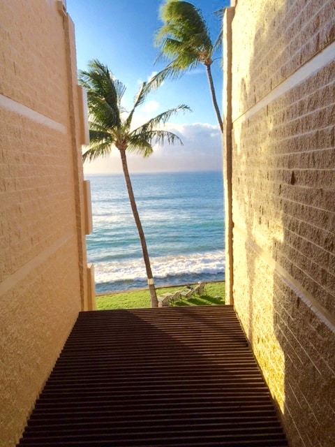 This serene oceanfront retreat is located along the Kaanapali coast, less than 50' from the beach and waves. The unit offers a whole lot of Aloha, with unobstructed views of an expansive crystal blue/green ocean, crashing waves, swaying palm trees, adjacent islands, starry skies and sea life (sea turtles and monk seals all year long, migrating humpback whales from late Dec through April). The interior is clean, nicely appointed, & has lots of amenities to make your stay comfortable & enjoyable.