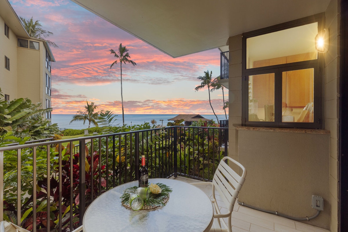 Paki Maui is an ocean front complex on the west side of Maui, directly on the oceanfront. There is a small sandy beach and double reef for swimming and snorkellng. Turtle viewing is prime! This condos lanai opens to a lush courtyard (see further description below) and fountain with koi fish. Minutes from the oceanfront seating . All the amenities you need but no AC. Unit just updated in April 2022 with some new indoor and outdoor furniture and 50” smart TV.