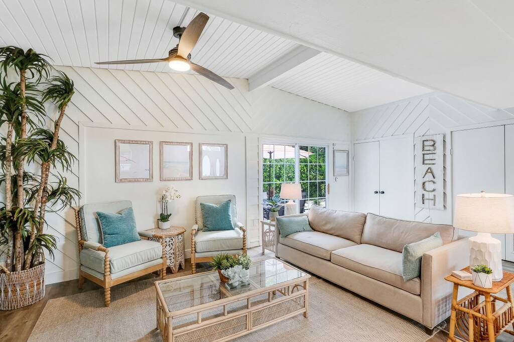 Unique Key West Style Villa on a friendly private Pave stone street. You will have the entire second floor which consist of an open kitchen/living area plus two bedrooms and two bathrooms. There is a private front porch and a shared rear patio with grill . Queen bed master all quality mattress, all items are new sofa bed also. 3 blocks from 5th Ave Shopping. just over one mile to beach with many beach toys in garage.