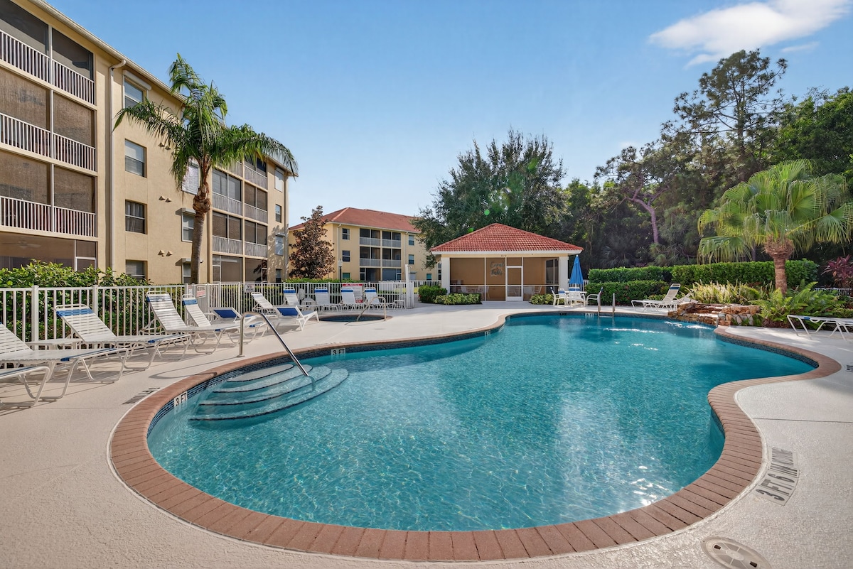 This secluded and beautiful beachside getaway is yours. Perfectly positioned easy access to white-sand beaches & fabulous shopping/dining/golfing/site seeing experiences of Naples. (2 bed 2 bath.) Gorgeous lakeview, (turtles/ducks incl.). HEATED POOL. Enjoy fresh coffee at sunrise from lanai watching swans take their morning swim or have a nightcap near shimmering moonlit pond. We warmly welcome you to rest, relax and stretch-out at this incredibly charming Beach*House cottage.