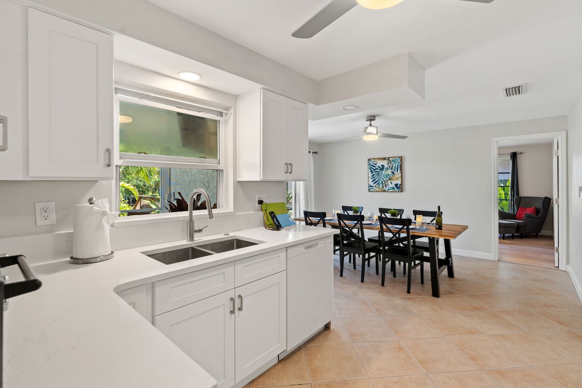 BRING YOUR BOAT! This ranch home is located on a canal with direct access to the Gulf/Naples Bay(no bridges). Amazing water sports access. In the cool/hip Bayshore Arts district! Great restaurants, Naples Botanical Gardens, boating, 3 miles to DT Naples and 4 to the best beaches. This is a perfect family/friends vacation spot. We have all the gear to enjoy this location. Quiet neighborhood/newly renovated/great views. Coffee on the deck with sunrise in front of you or drinks at sunset. Serenity