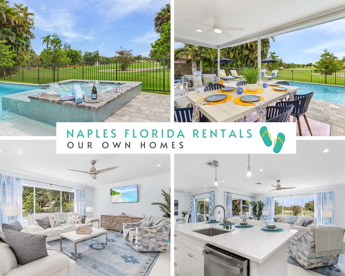Experience luxury living in this stunning 3-bedroom, golf-front home in Naples, Florida. Enjoy breathtaking golf course views from your private heated pool and relaxing jacuzzi. Designed for comfort and style, this home offers spacious living areas, modern finishes, and seamless indoor-outdoor living. Perfectly located for golf enthusiasts and those seeking a serene Florida lifestyle, just minutes from beaches, dining, and shopping.