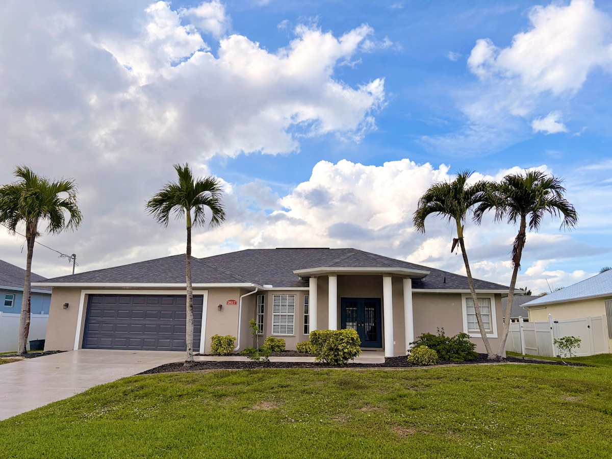 Welcome to Pelican House, a bright and spacious Florida getaway designed for family fun and total relaxation. This beautiful 4-bedroom, 2-bathroom home features a free heated pool and a sunny open layout, perfect for enjoying Cape Coral’s tropical lifestyle. Large sliding doors from the dining room, great room, kitchen, and master bedroom fill the home with natural light and provide direct access to the pool area — where you can swim, sunbathe, or enjoy meals al fresco. The screened lanai and c