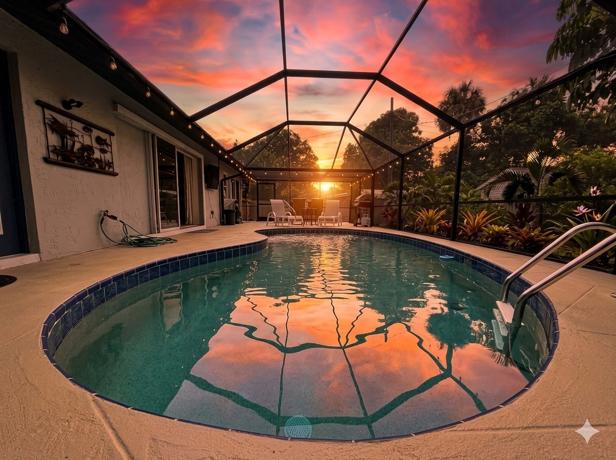 Relax at the solar heated pool and enjoy the serenity of the beautiful, and peaceful 0.6 acres of land with a natural pond where different types of birds like egrets, herons, and ducks can be seen. Close to shopping, dining and just 7.5 mi to Bonita Beach Park. If you play Golf, The Bonita Fairways Public Golf Club is 2.8 mi. Or buy a day pass at the Hyatt Regency and spend the day at the lazy river and waterslides. The backyard is all fenced in, ideal to let your dog run.