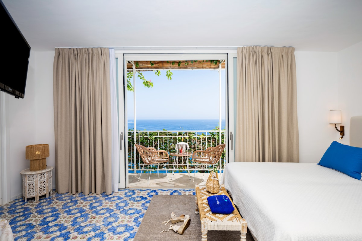 位于阿马尔菲的精品酒店客房,可欣赏海景